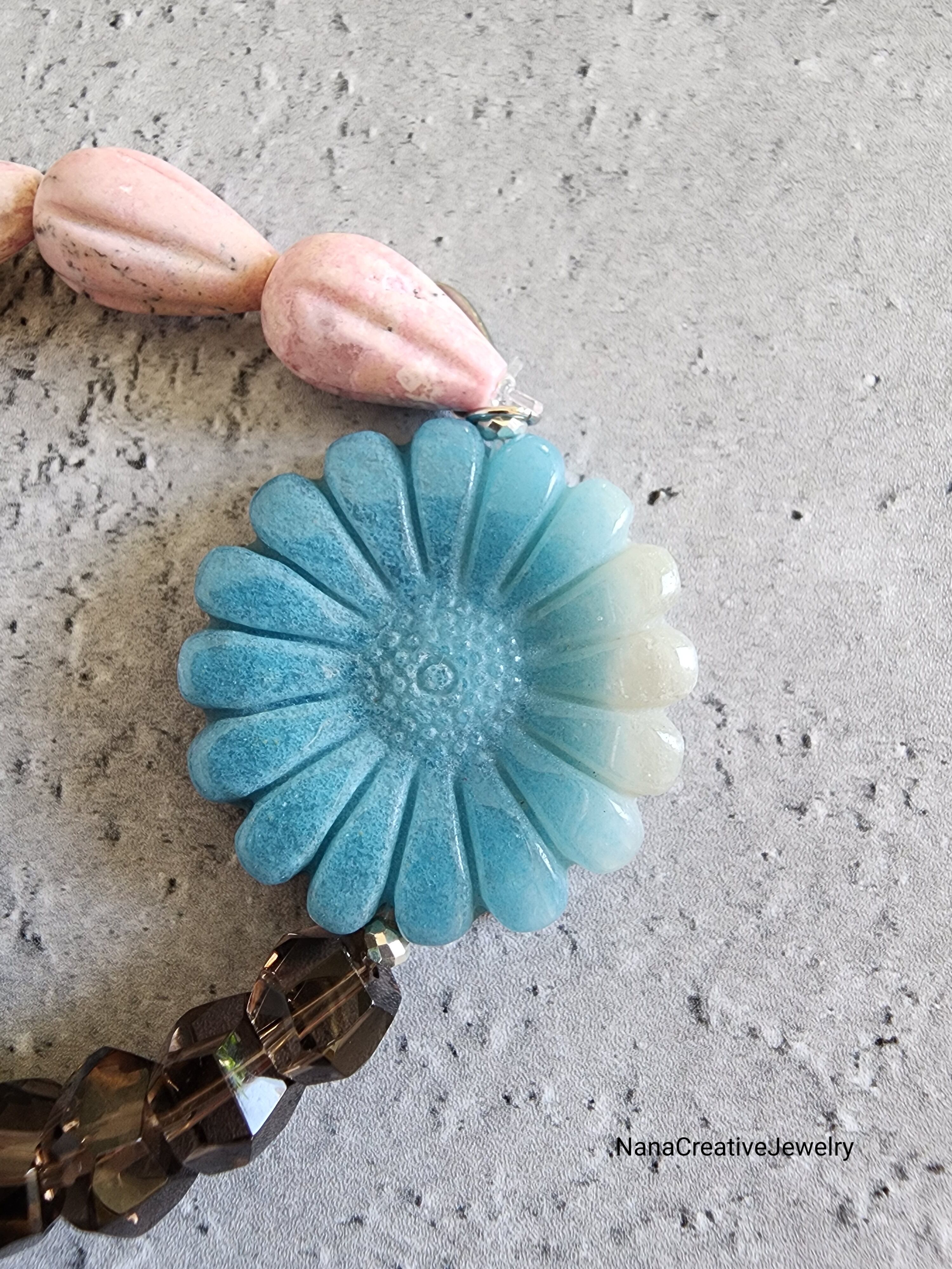 デイジー(雛菊)の形に彫刻が施されたトロレアイトはとても可憐な雰囲気で、繊細な技によりデイジーが生き生きと表現される珍しいストーンです。