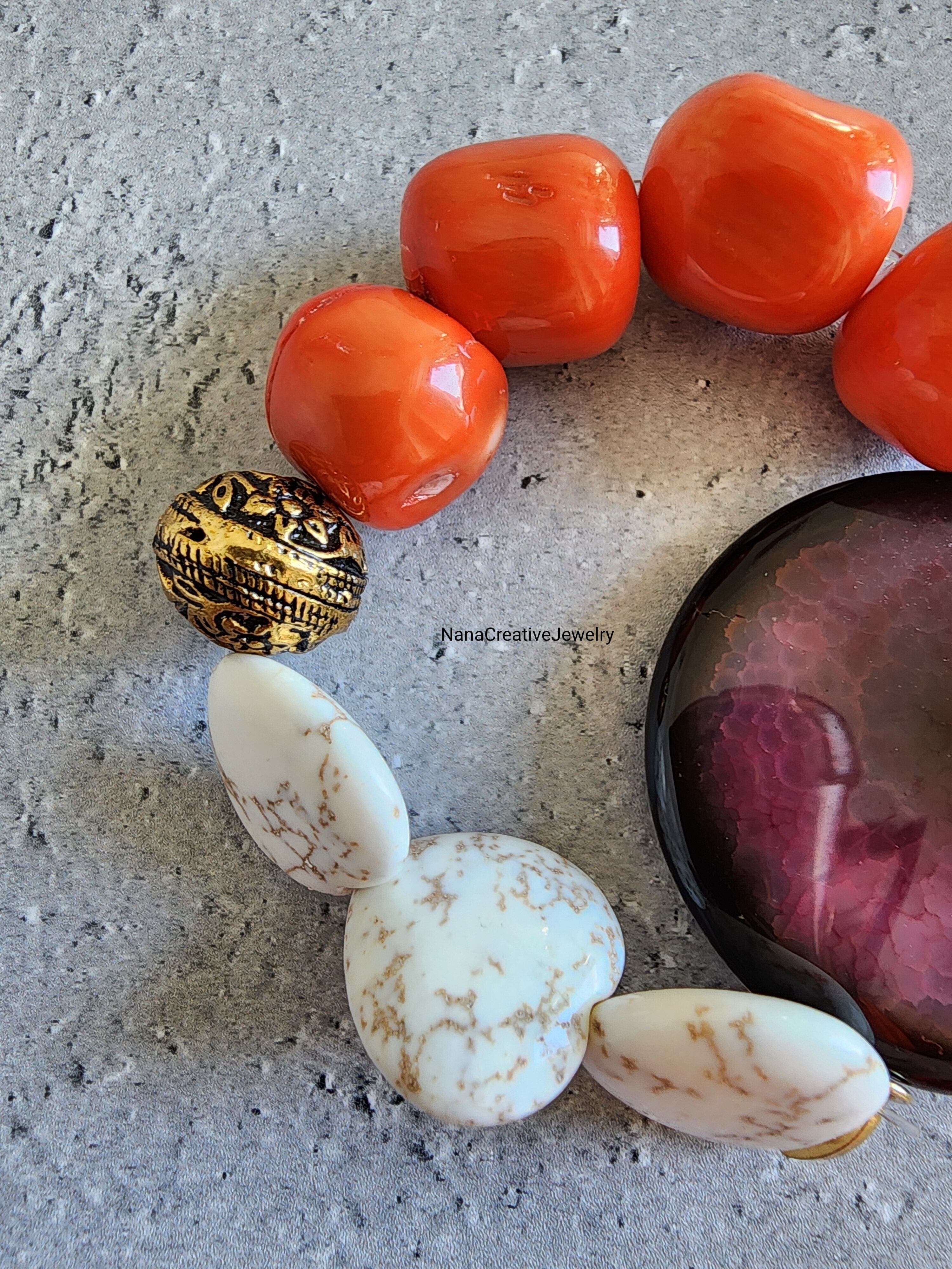 Multicolor bracelet(アゲート×コーラル×マグネサイト)