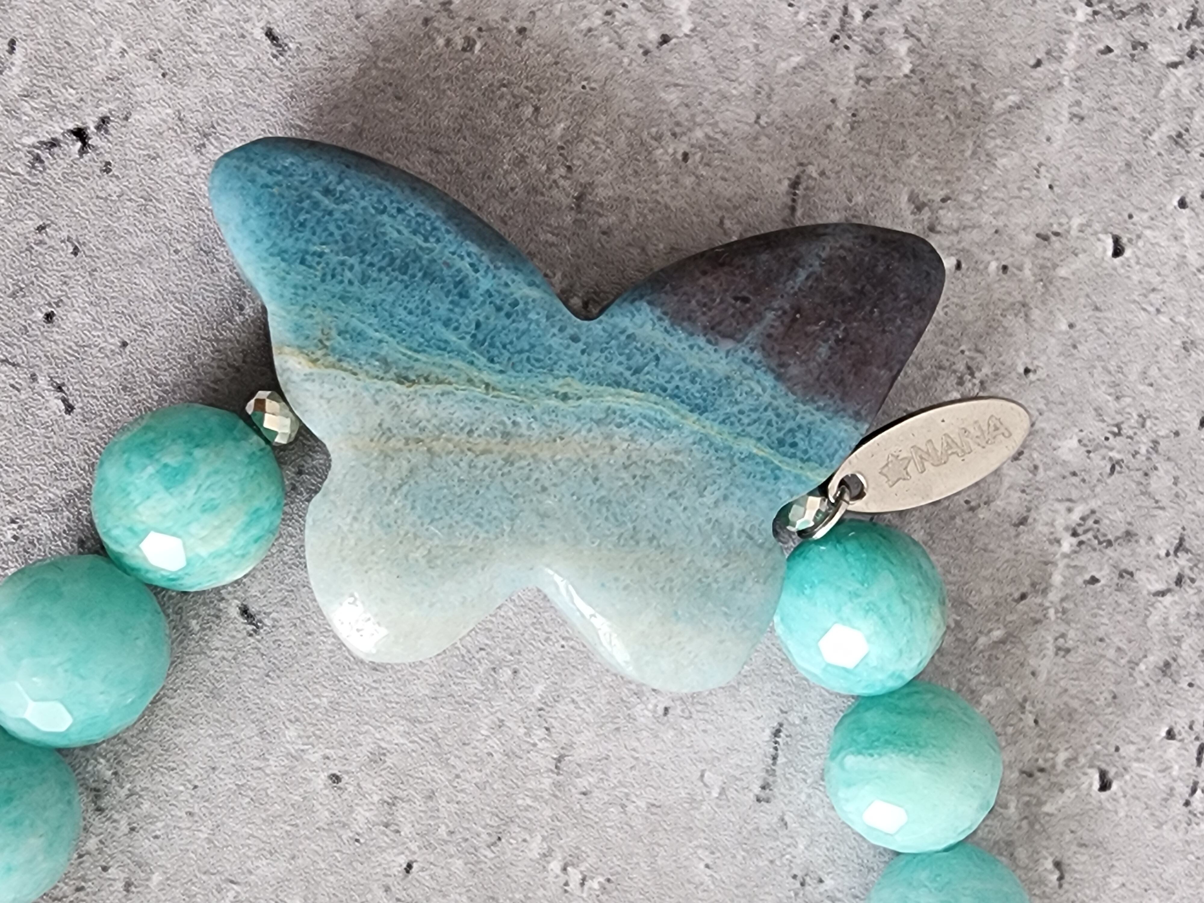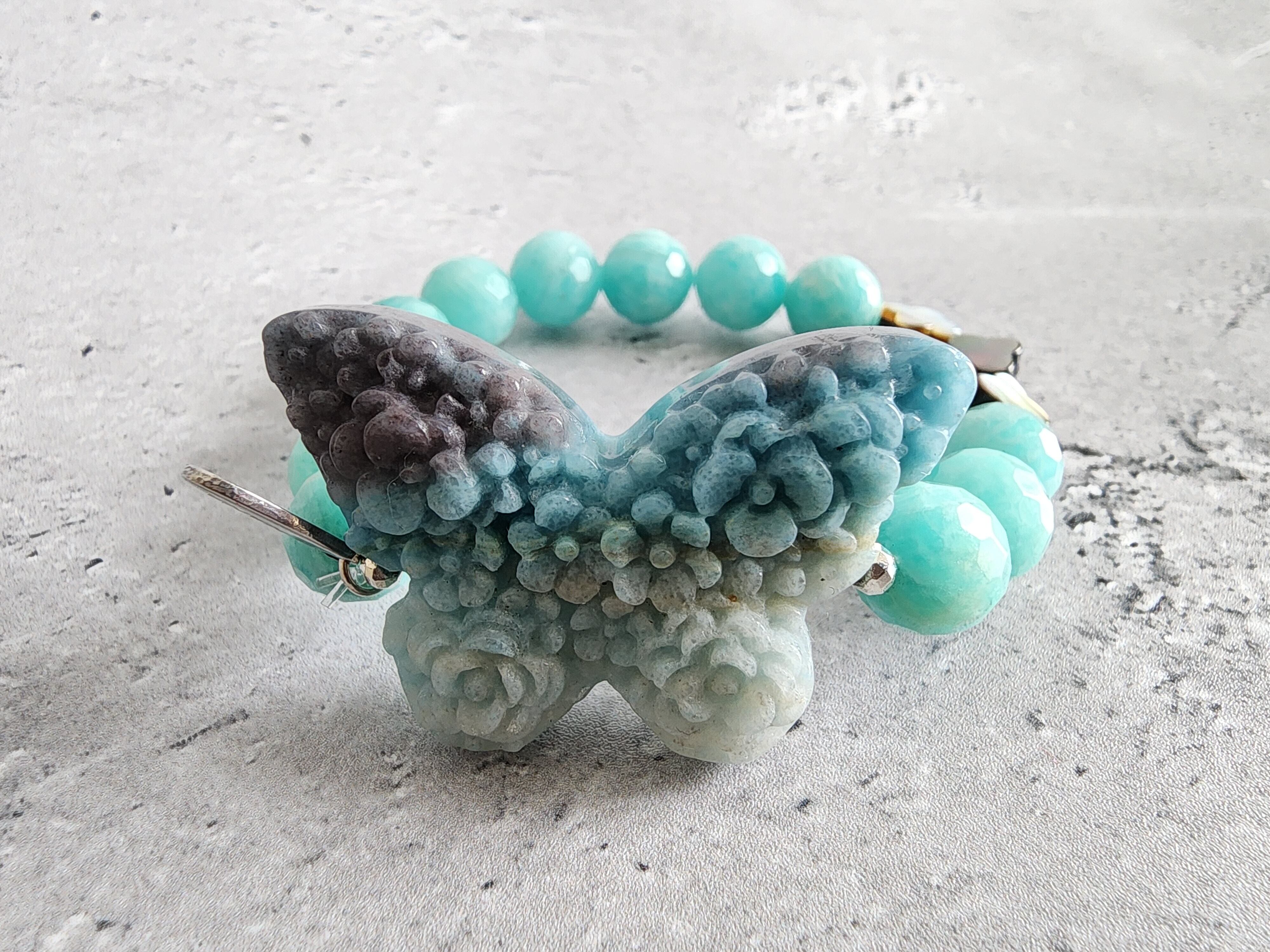 【一点物】Butterfly bracelet(トロレアイト×アマゾナイト×ブラックシェル)