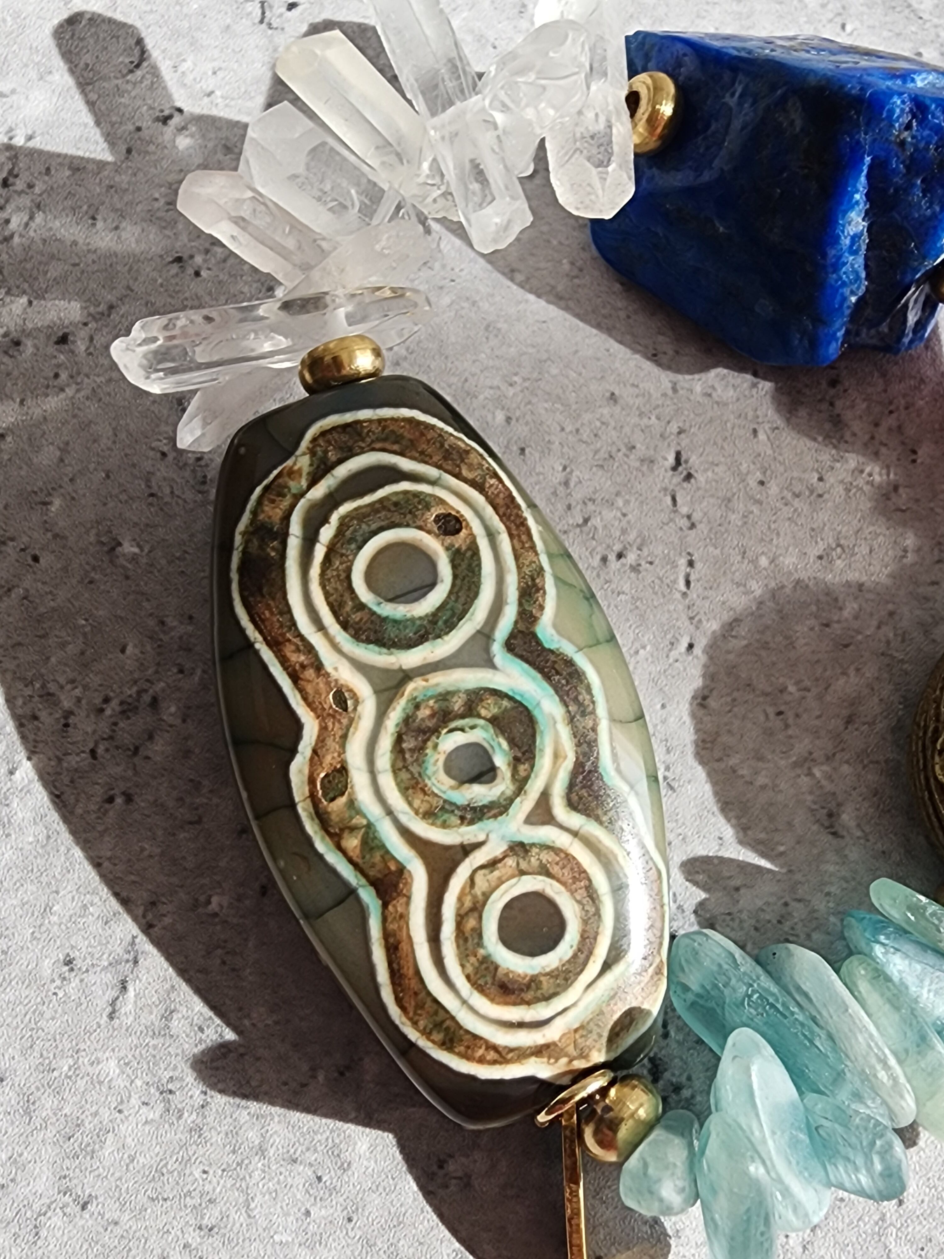 dzi six eyed(六眼天珠×グリーンカイヤナイト×インカーローズ×ラピスラズリ×クリスタル×真鍮)