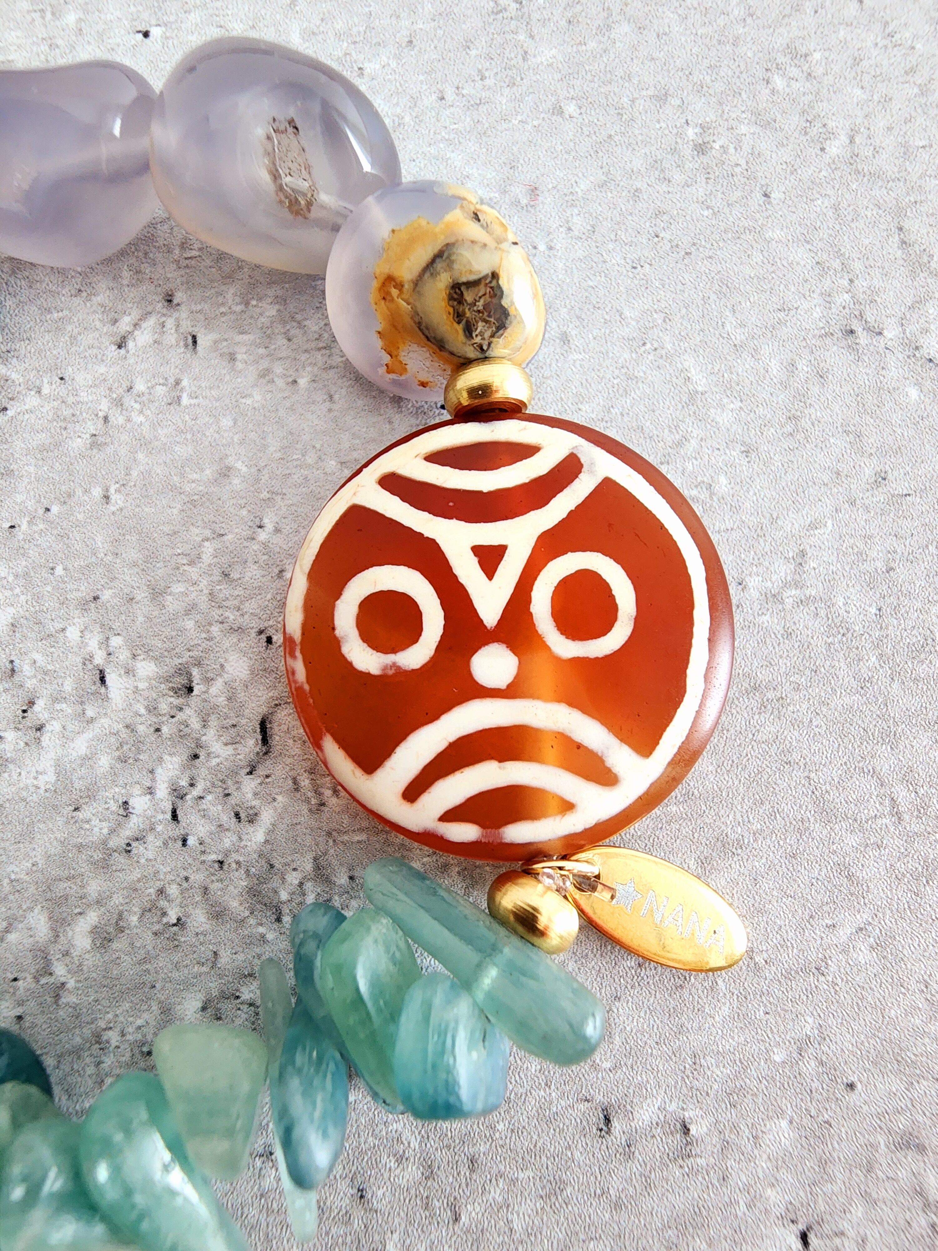dzi two eyed tiger tooth Sun(二眼虎牙太陽天珠×グリーンカイヤナイト×ブルーカルセドニー×真鍮)
