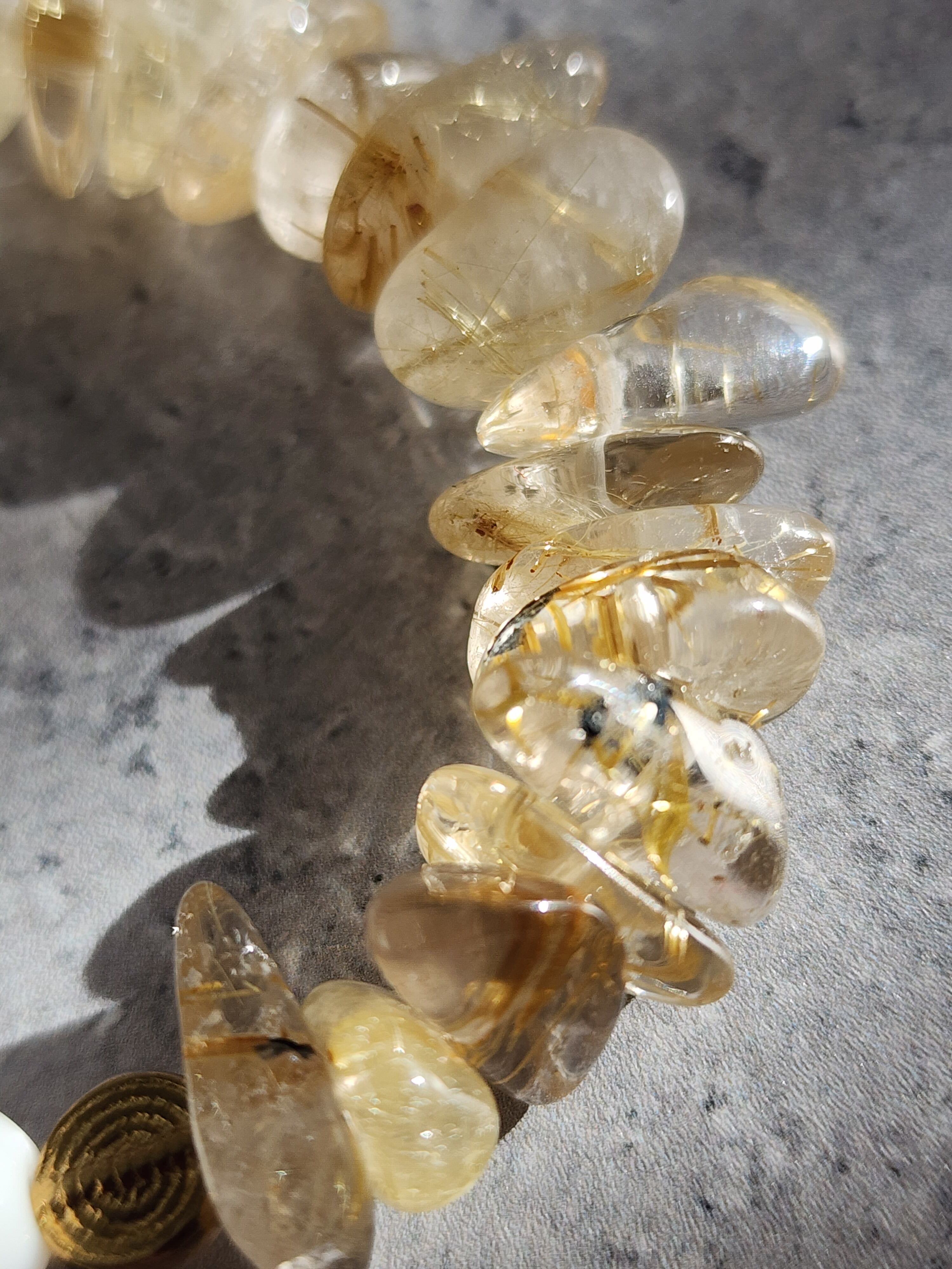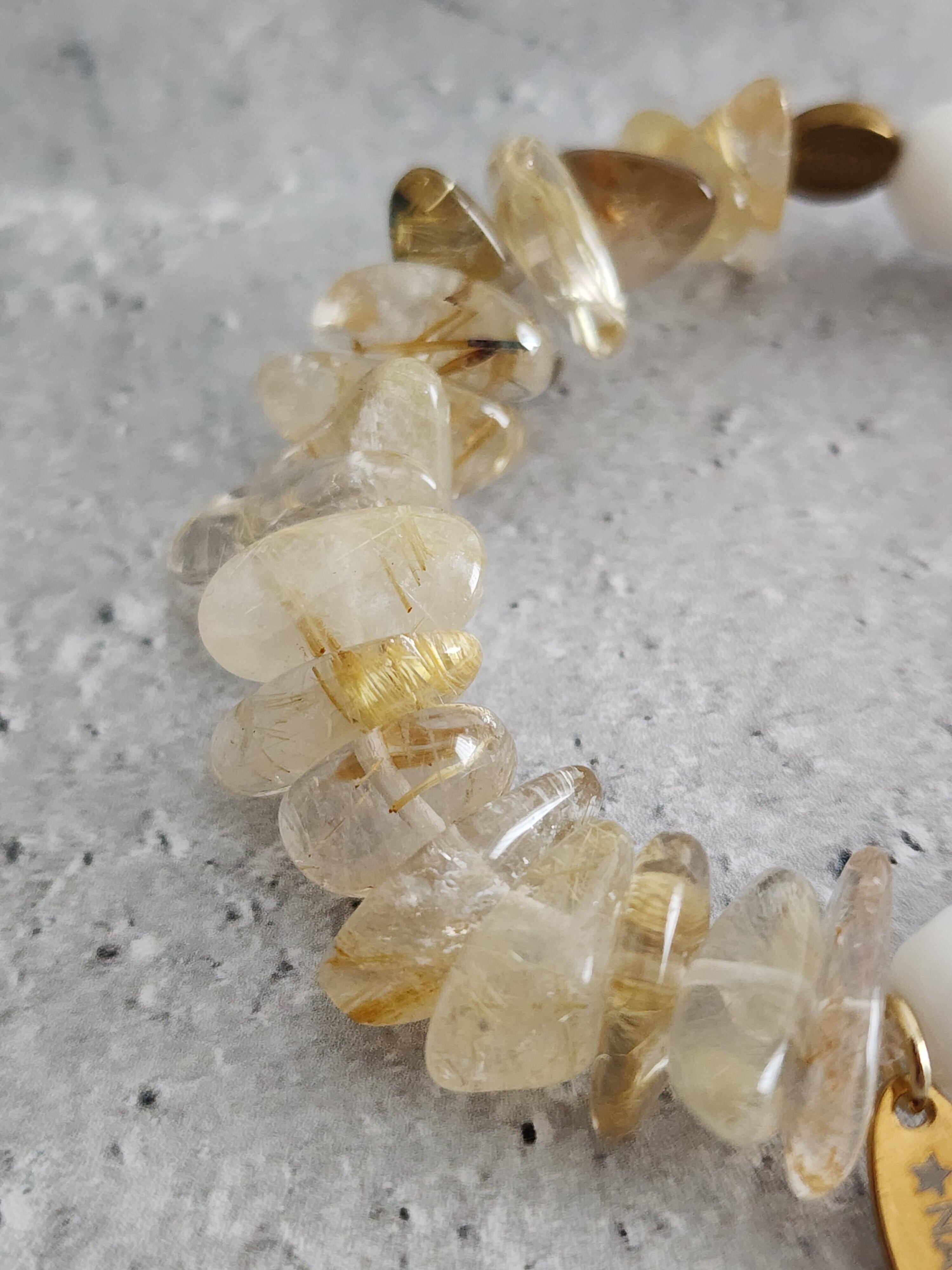 multicolor bracelet(オニキス×ルチルクォーツ×真鍮×オールドガラス)