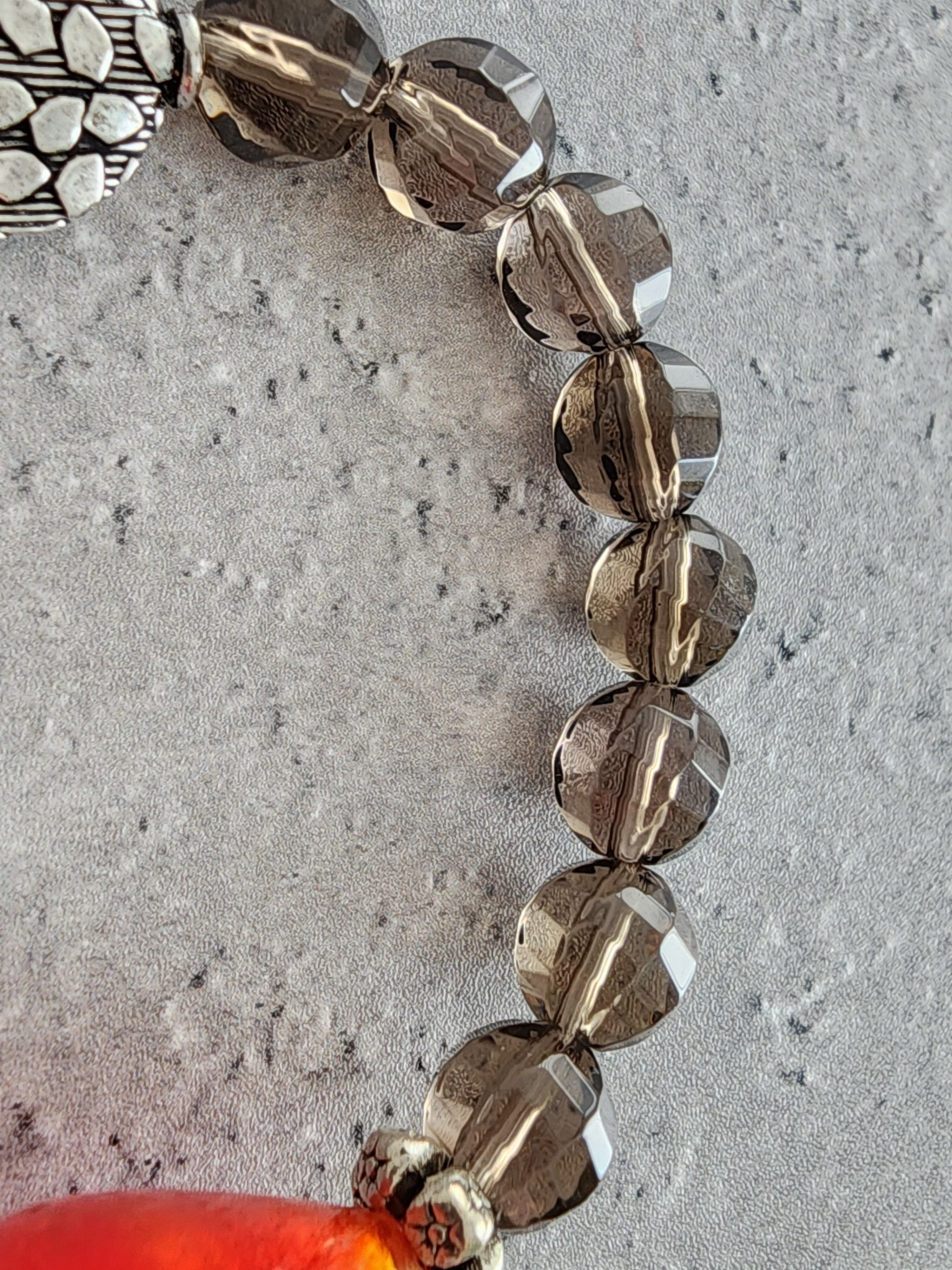 heart bracelet(ベネチアンガラス×北投石×スモーキークォーツ)